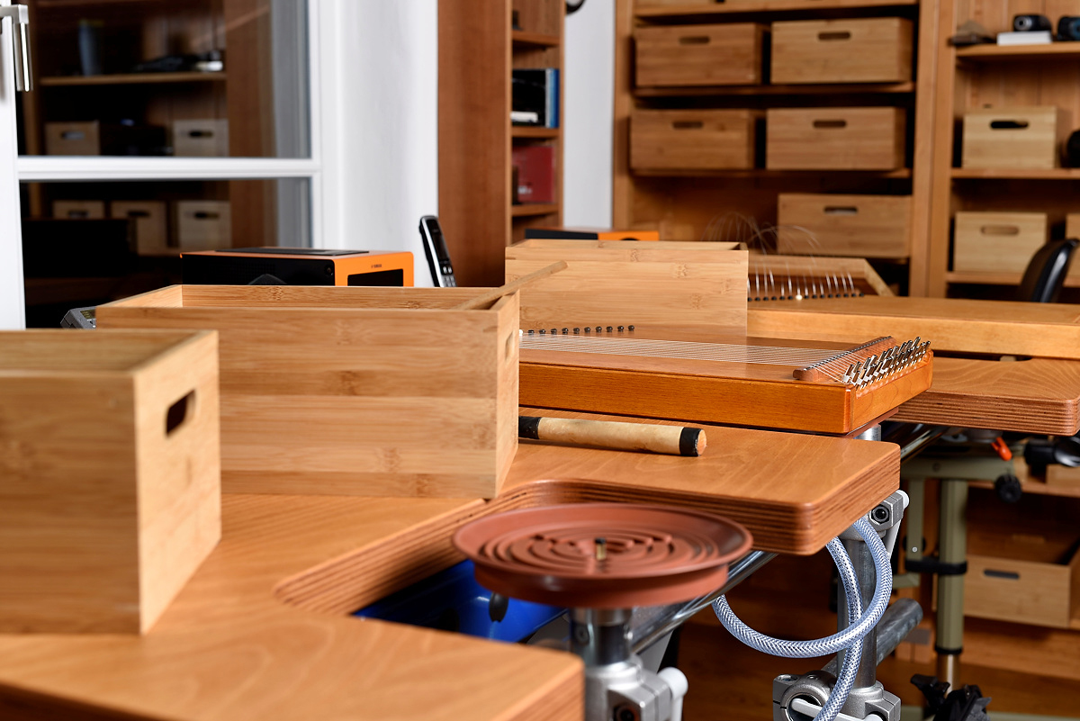 Moderne Maschinen ergänzen sich mit den Erfahrungen alter Handwerksmeister, die Leistung neuester computergetützter Technik mit der Erfahrung, dem Können und dem Feedback der Musiker, welche die Instrumente in der Praxis testen und spielen. |